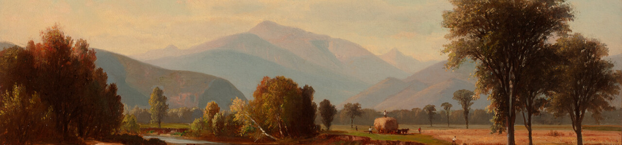 A Legacy of Landscapes presents a sampling of their private collection, showcasing the work of 41 different artists, including Albert Bierstadt, Thomas Cole, Benjamin Champney, Thomas Hill, and Jasper Cropsey. Some of the works are magisterial depictions of New Hampshire’s grandest peaks, while others are more intimate and pastoral scenes. Together, they tell the story of New Hampshire. White Mountain landscape art would become emblematic of the Granite State, capturing its stunning natural beauty and the indomitable spirit of its people. The work created by White Mountain artists helped define American landscape painting.
